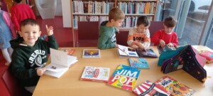 • Vendredi 6 février, nous sommes allés à la rencontre de Marina, à la médiathèque, pour y découvrir une exposition sur le cirque: ses albums, son histoire, les peintures et les artistes qui l’ont représenté, les objets. Enfin, les enfants ont écouté des histoires autour du tapis de contes.
